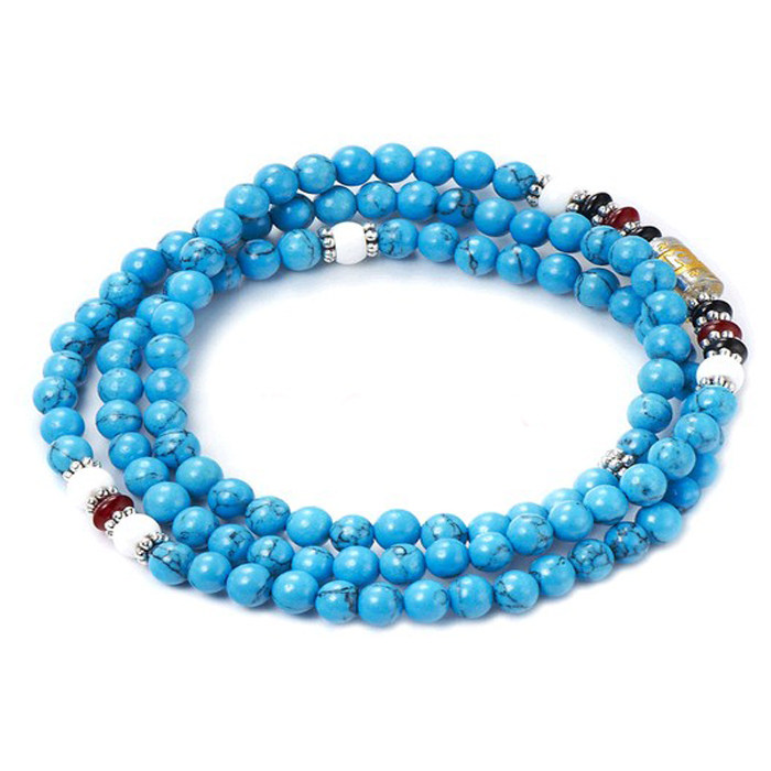 天然蓝松石108颗佛珠手链 白水晶六字真言手链 多圈蓝松石手链