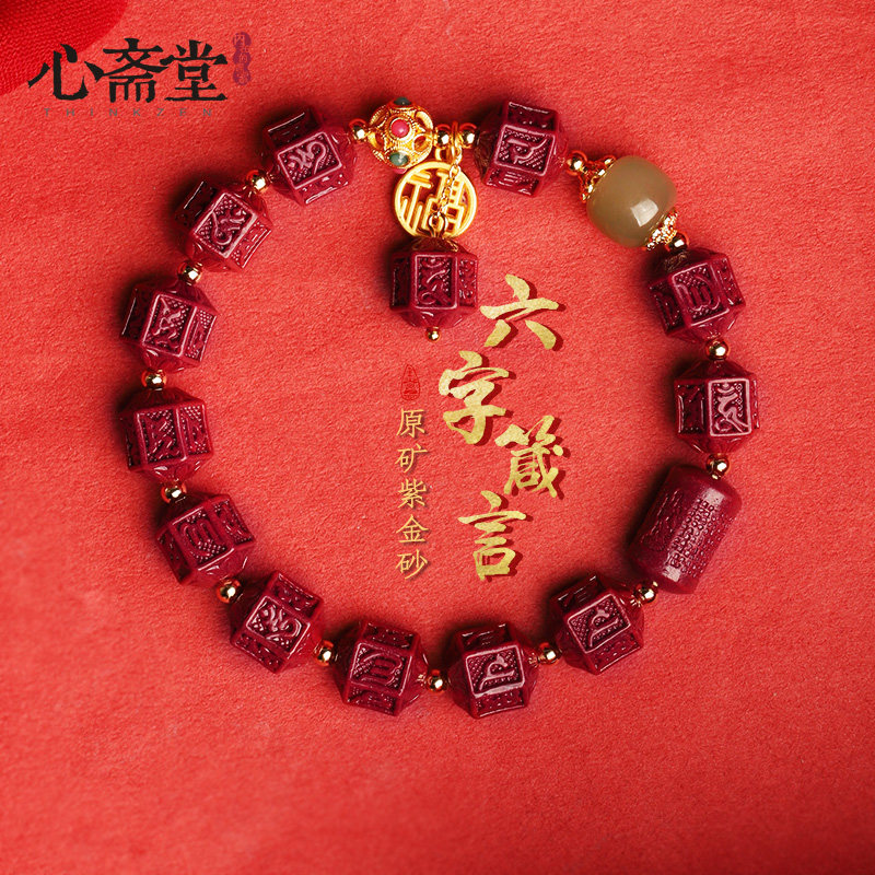 心斋堂【见云】原矿朱砂手串紫金砂六字真言手链本命年男女款国潮