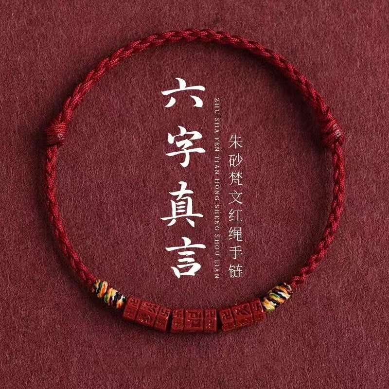 六字真言手链男女2025本命年天然朱砂手串红绳新中式手工编织手绳