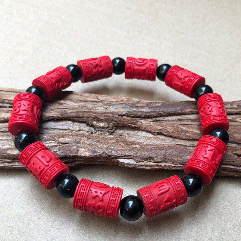 红色朱砂六字真言手链 桶珠属狗本命年情侣手链礼物开运朱砂手串
