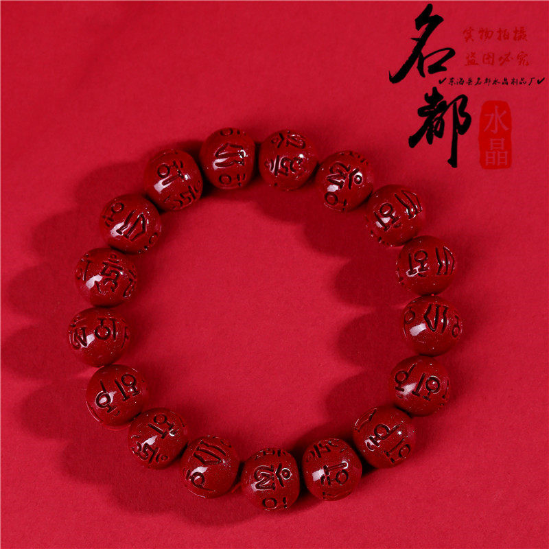 名都水晶 天然紫金朱砂六字真言手链 朱砂六字箴言手串 厂家直销