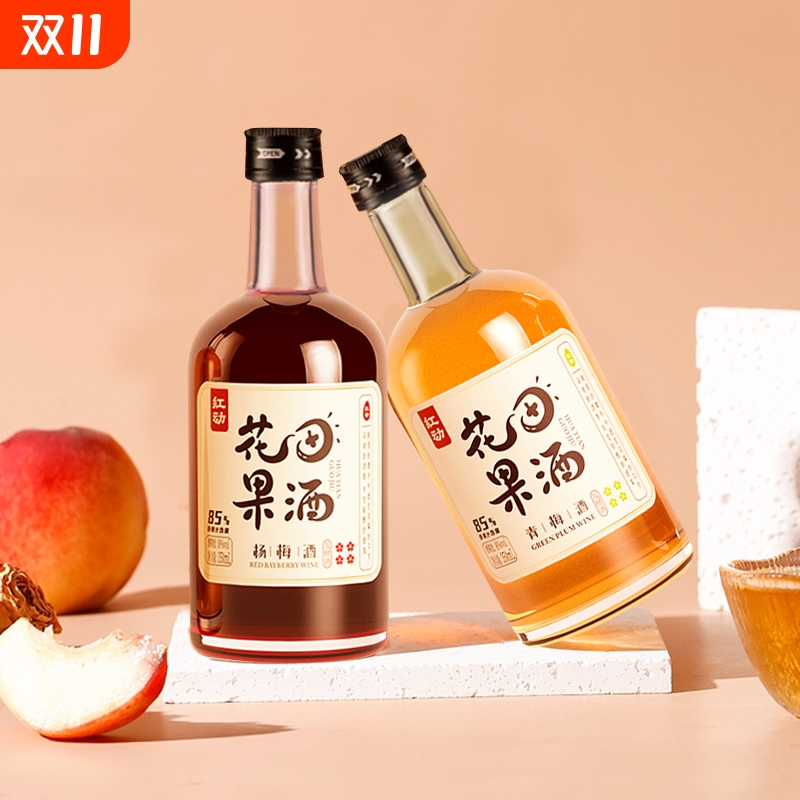 红动正宗杨梅酒330ml*2瓶装 8度梅子酒夏日果酒 女士低度微醺聚会