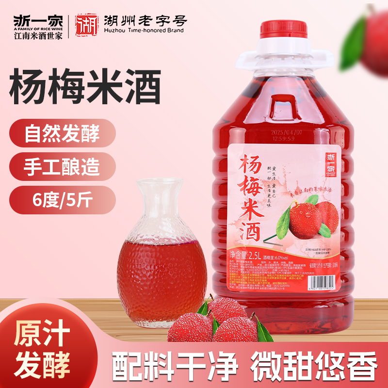 浙一家果酒杨梅酒米酒糯米酒微醺甜酒新鲜手工酿造晚安酒2.5L