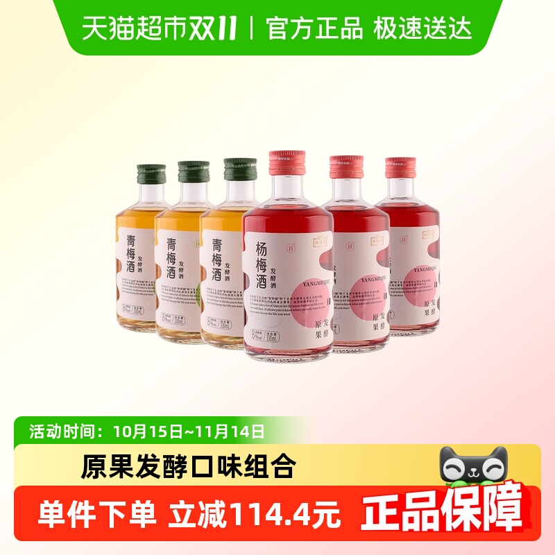 【6瓶组合装】红动发酵杨梅酒330ml*3瓶+青梅酒330ml*3瓶低度果酒