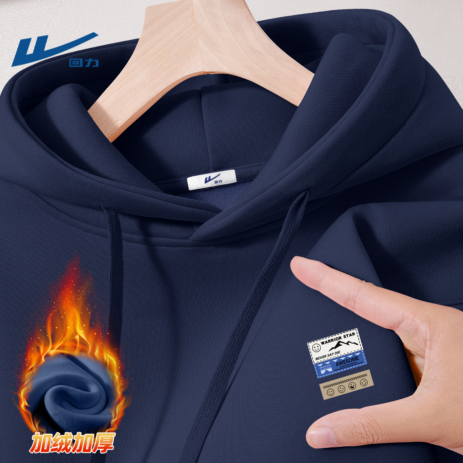 回力连帽卫衣男款冬季加绒青少年外套加厚男生冬装衣服潮流上衣男