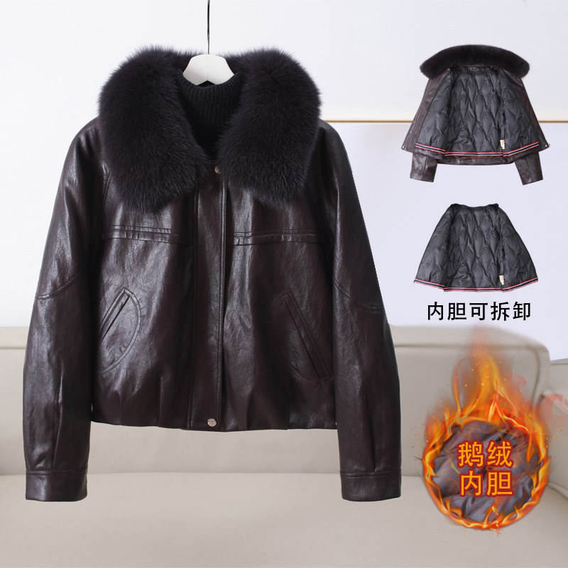 - 真皮皮毛一体外套女