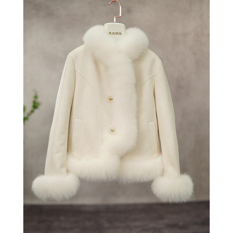 - 羊毛皮毛一体女大衣