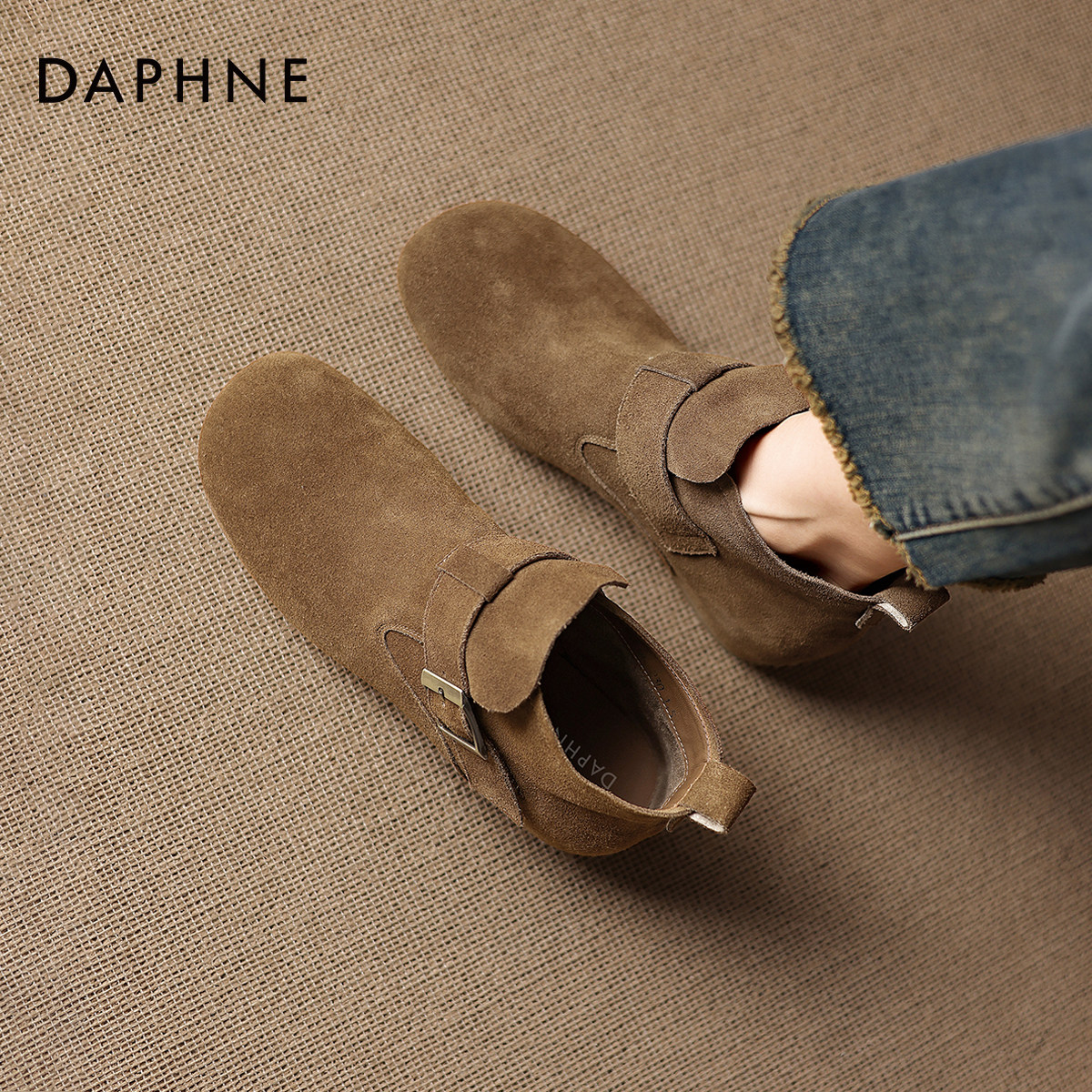 达芙妮磨砂短靴女2025新款加绒平底绒面女士瘦瘦靴子女冬季马丁靴
