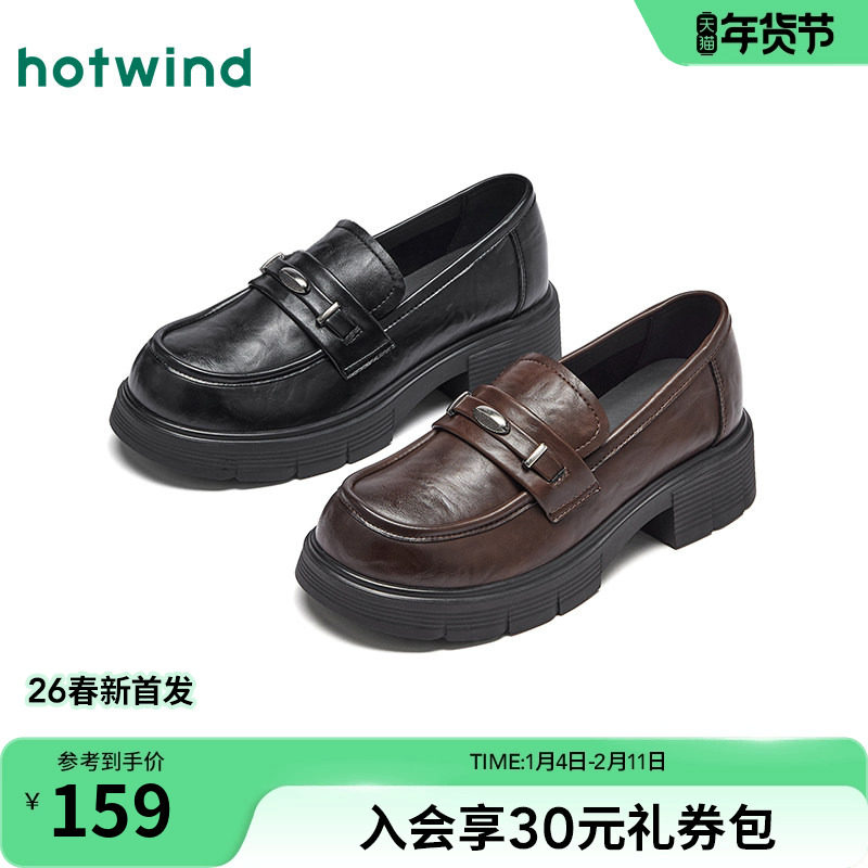 热风厚底乐福鞋女2026年春季新款英伦风百搭小皮鞋黑色粗跟女鞋子