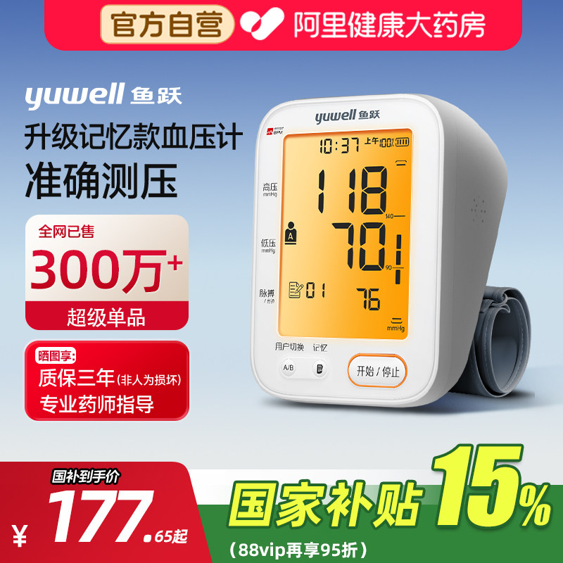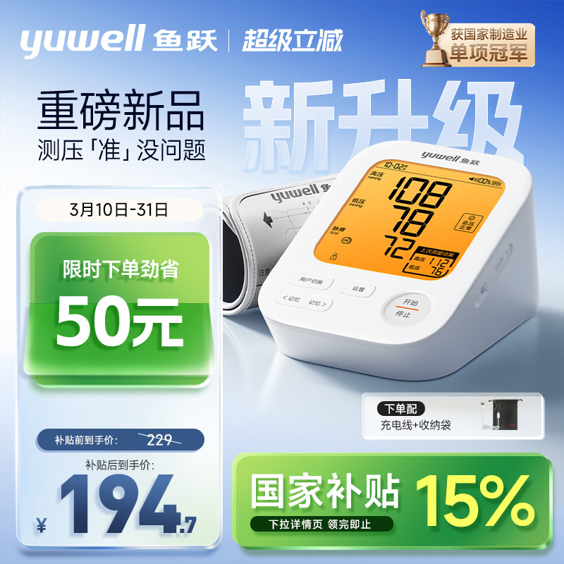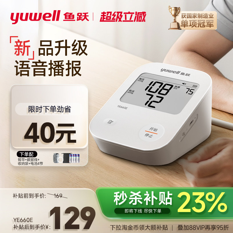 【国家补贴】鱼跃电子血压计臂式高精准测量仪家用测压官方旗舰店