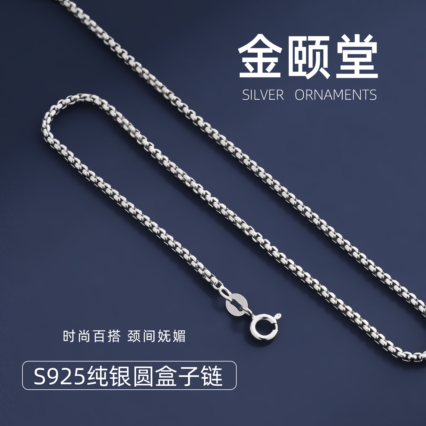 925纯银项链男潮嘻哈男士裸链ins吊坠个性韩版简约盒子链条女士