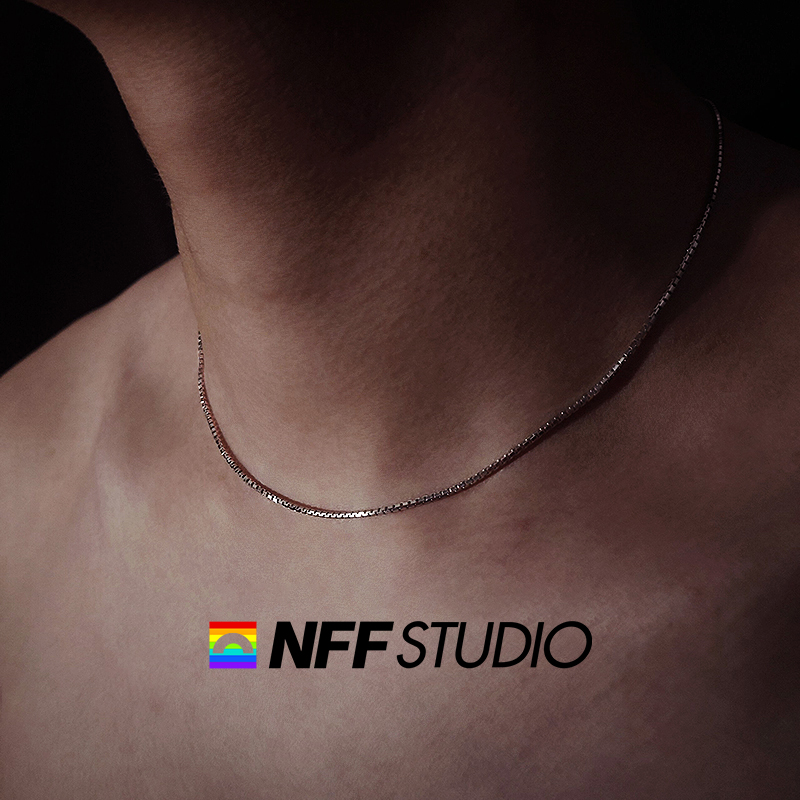 NFF925纯银项链男潮嘻哈素链无吊坠个性韩版简约盒子链百搭锁骨链