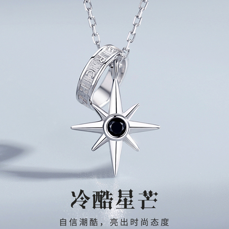 s925纯银项链男嘻哈潮简约个性吊坠轻奢小众设计感情人节礼物