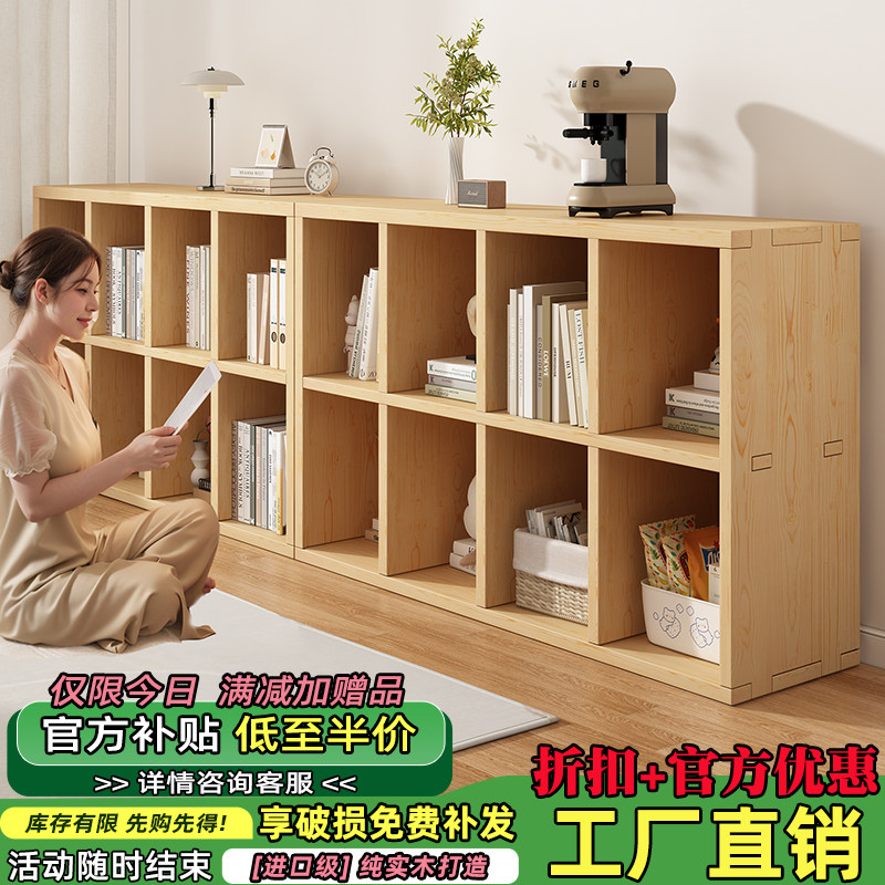 全实木书架置物架落地靠墙组合格子柜客厅松木储物收纳矮家用书柜