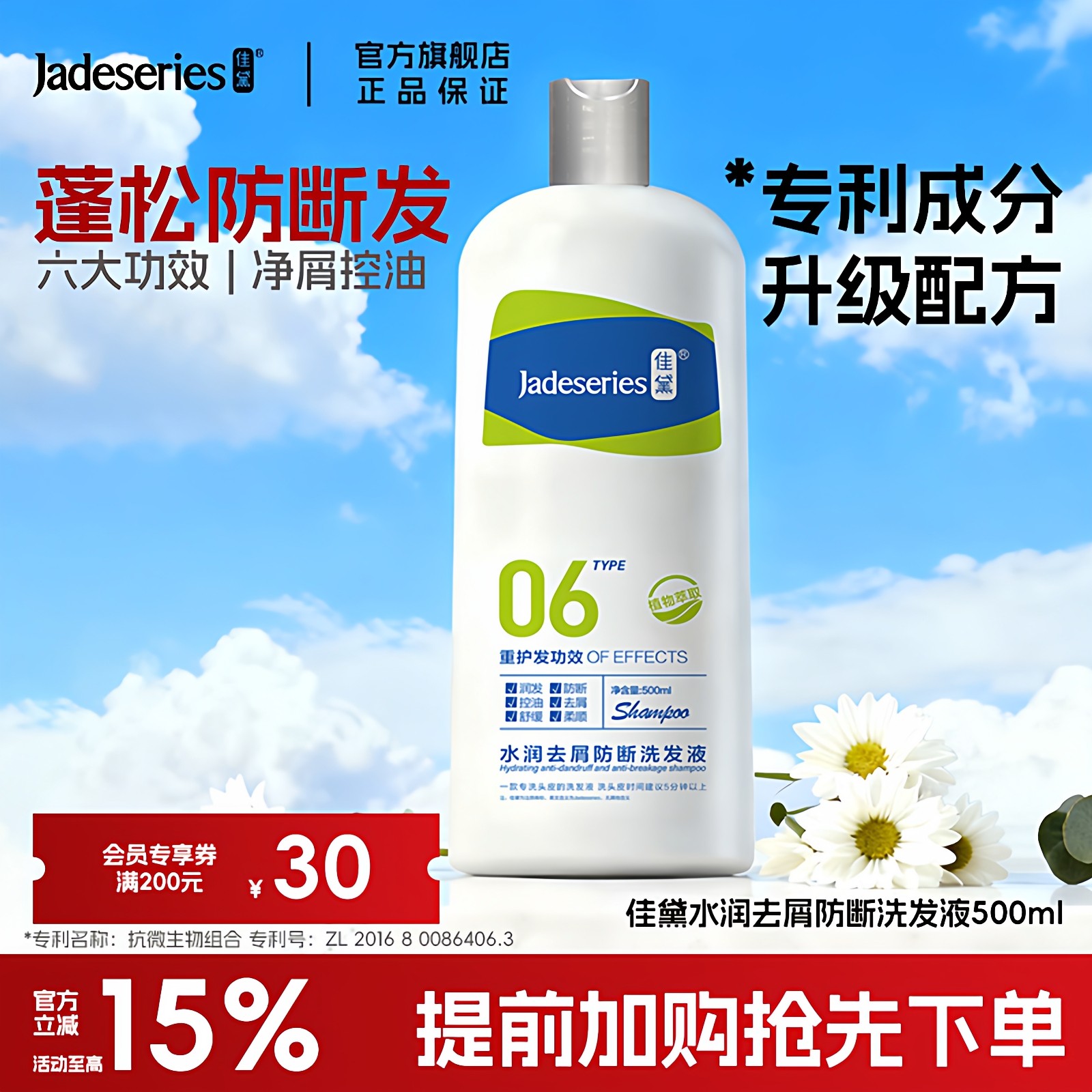佳黛防断发洗发水500ml去头屑六大功效柔顺清爽止痒正品控油保湿