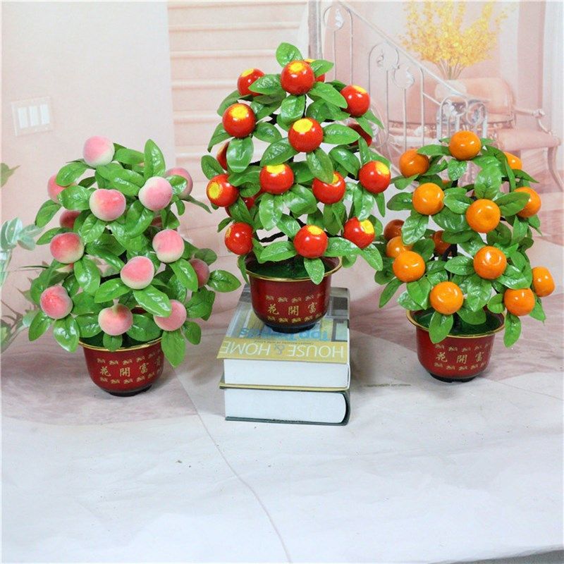 石榴花仿真花假花摆设冬青红果发财果柿子新年装饰年宵干花束摆件
