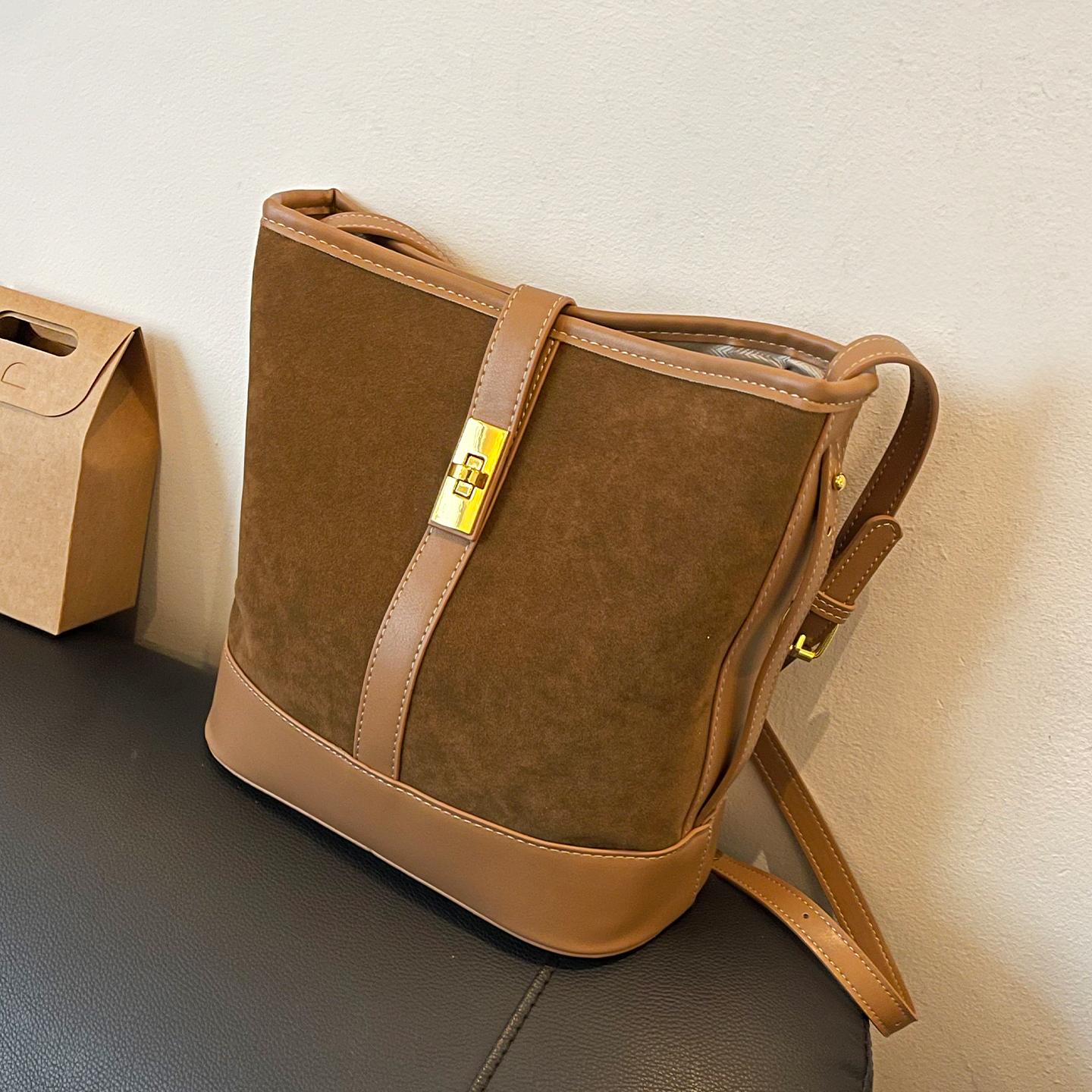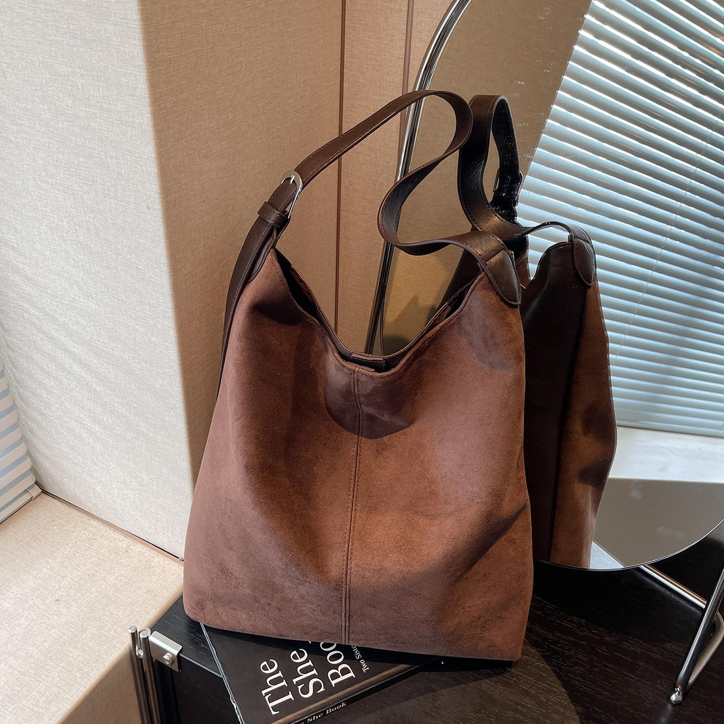 秋冬包包女式2025新款复古麂皮绒通勤托特包大容量单肩斜挎水桶包