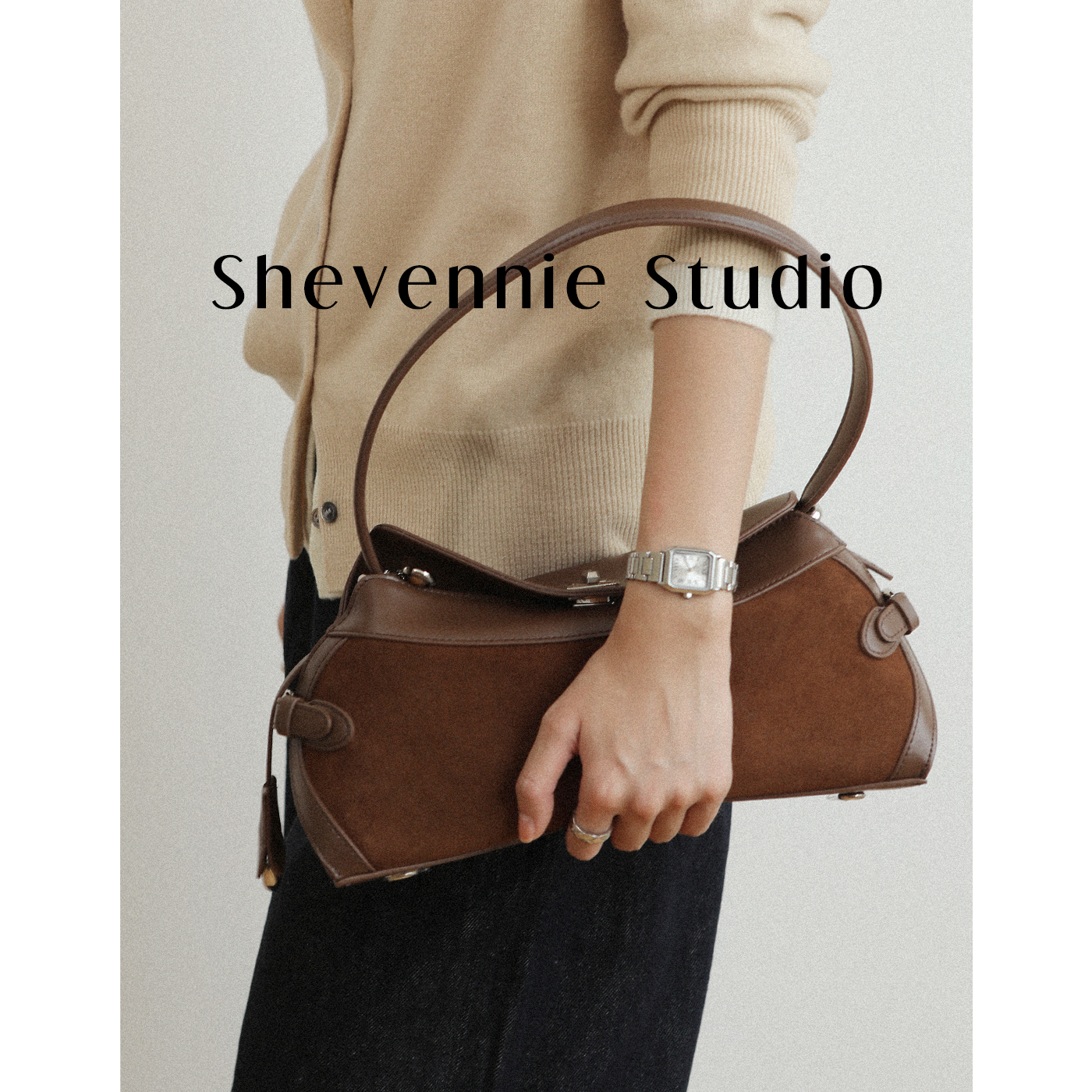 Shevennie复古通勤半圆手提托特单肩斜挎包 2025新款秋冬包包女款