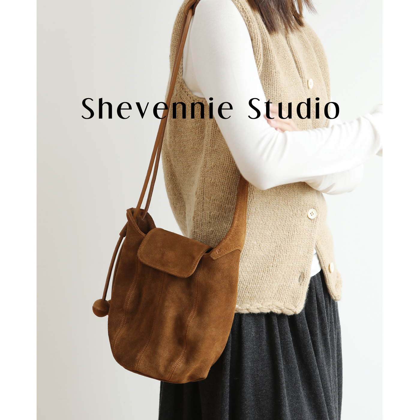 Shevennie编织大容量托特包水桶单肩腋下包 2025新款秋冬包包女款