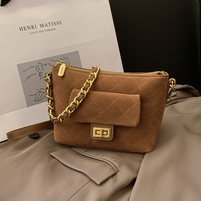 Shevennie复古羊皮磨砂皮菱格链条单肩手提 2025新款秋冬包包女款