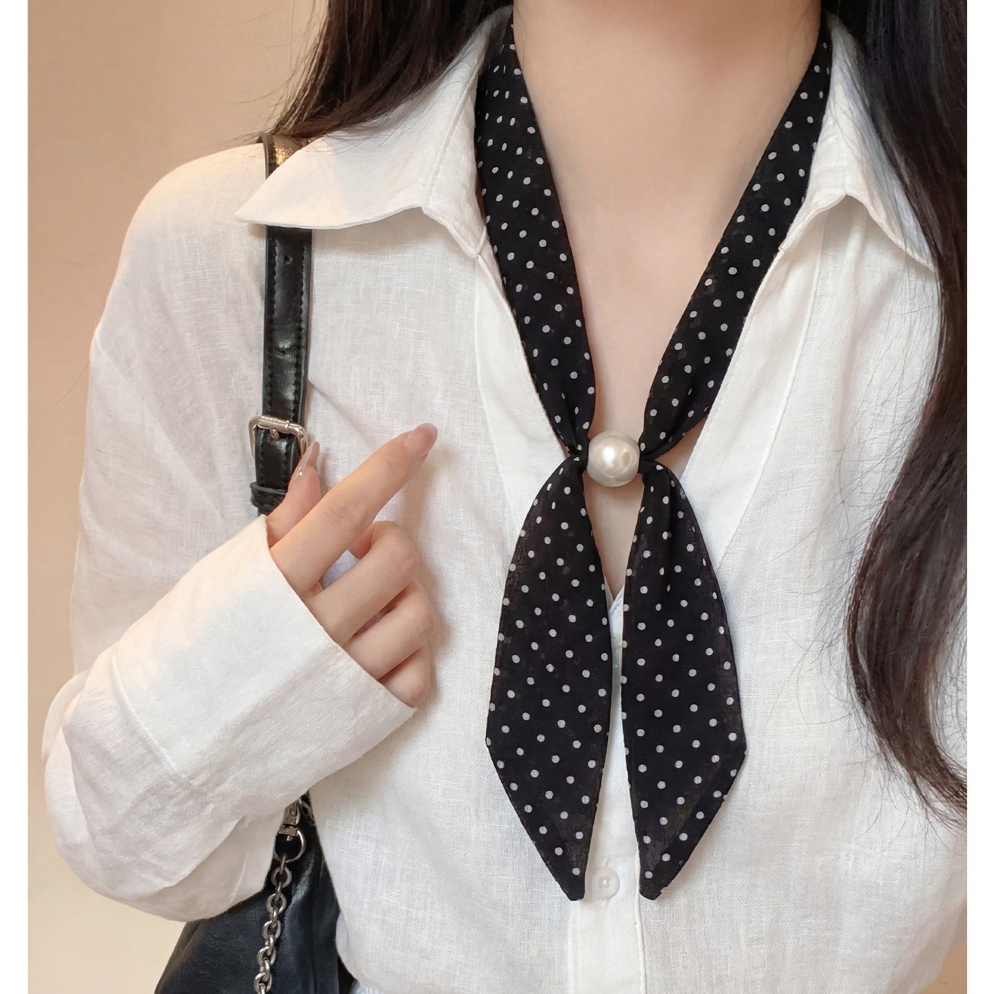 盈妹简约至臻丨法式赫本风黑色波点丝巾三角巾女发带腰带包包配饰