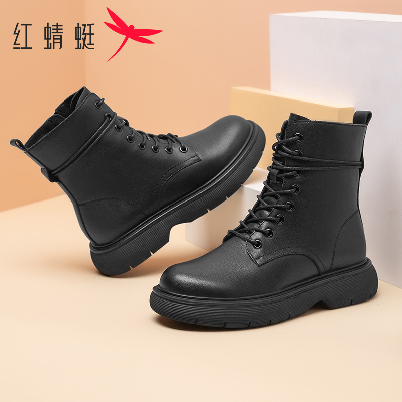 红蜻蜓真皮女款马丁靴 2025秋冬新款英伦风单靴 厚底套筒小短靴女