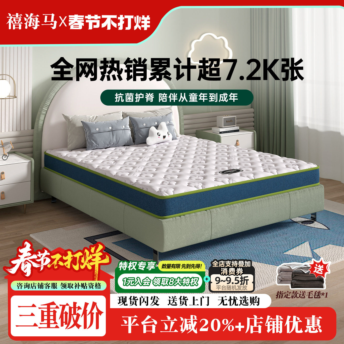 禧海马3E椰梦维硬棕海棉儿童椰棕床垫棕榈加厚家用可定制儿童床垫