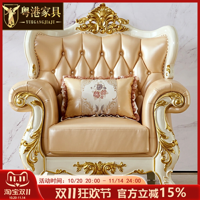 欧式沙发真皮实木雕花客厅家具高档美式奢华别墅头层牛皮123组合