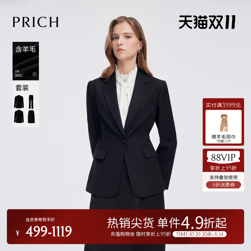 PRICH时尚简约一粒扣西装套装2025春季新款收腰商务通勤外套女