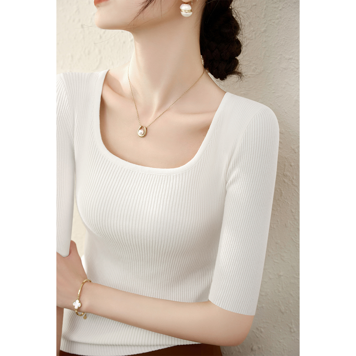 - 中袖打底针织衫