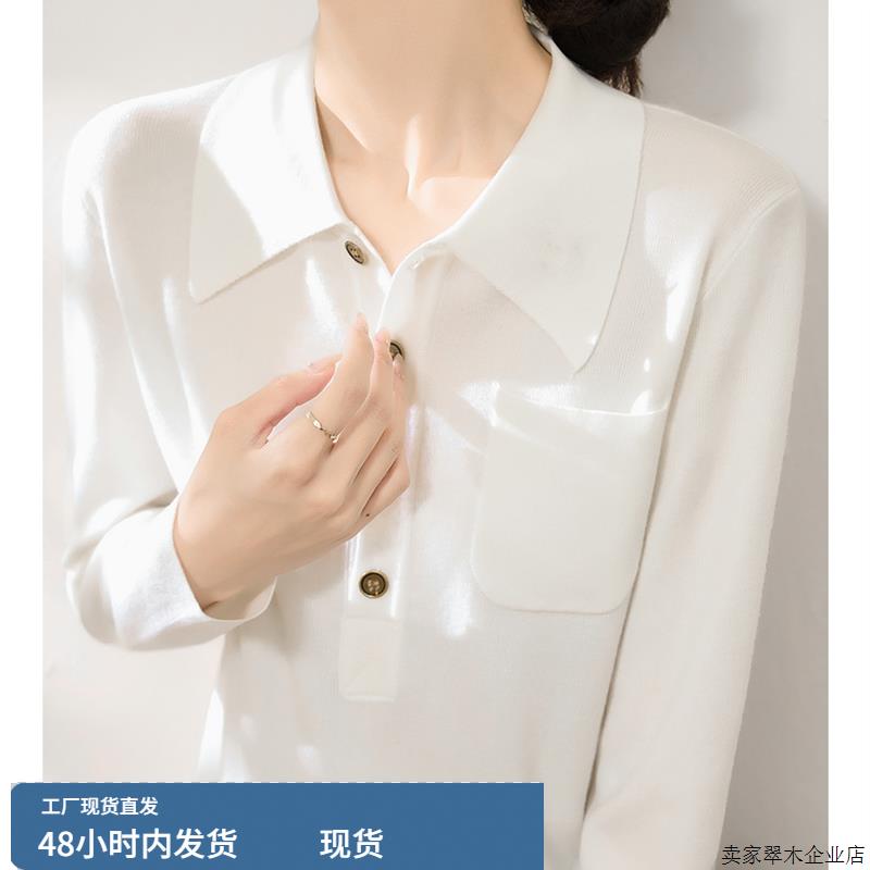 轻奢优雅风白色POLO领通勤中袖针织开衫女宽松显瘦设计感毛衣上衣