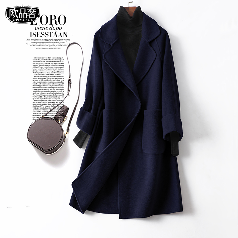 羊绒大衣女中长西装领系带收腰双面妮子秋冬新款高端气质毛呢外套