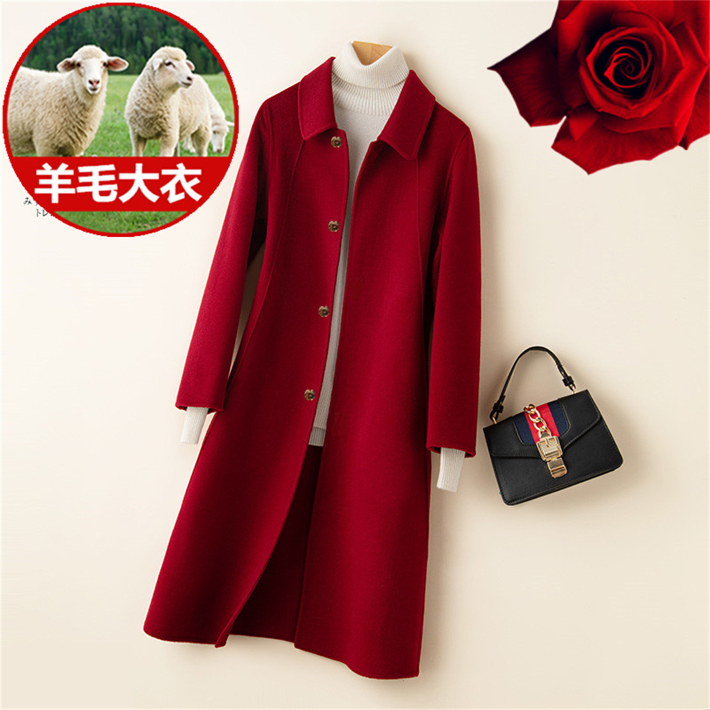 - 长款羊毛大衣女