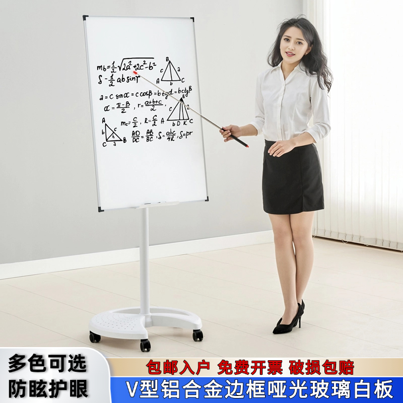 移动式白板哑光玻璃白板写字板可擦教学办公会议展示移动白板支架带轮小黑板家用教学培训磁性儿童画板记事板