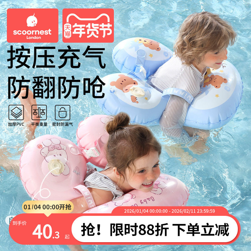 蔓葆免充气儿童游泳圈婴儿腋下3个月以上宝宝5岁家用幼儿游泳装备