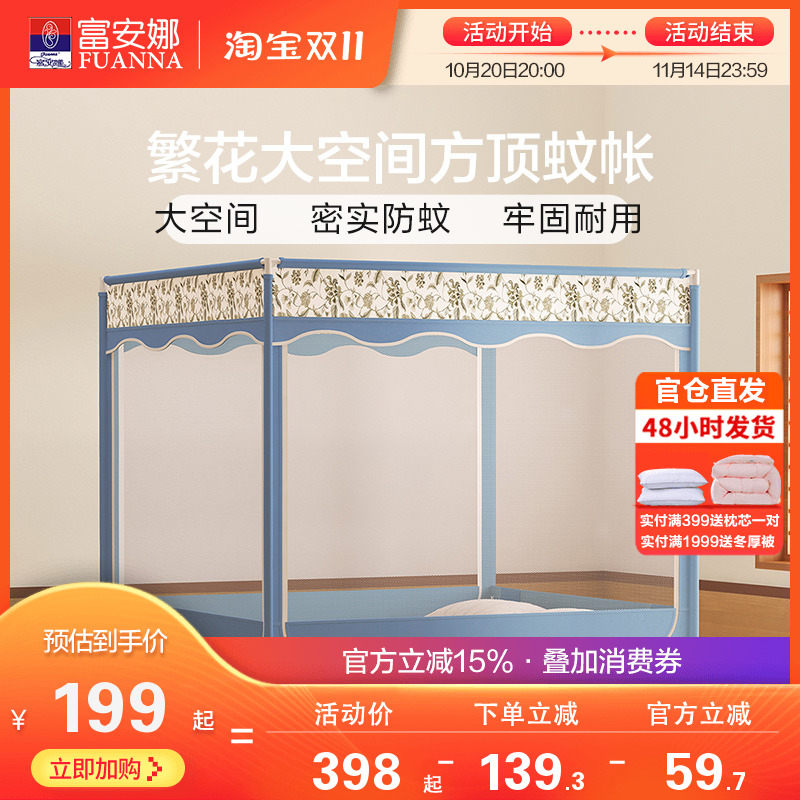 老式家用加密蚊帐卧室双人床大床方顶绑带式文帐出租房子母床帐篷