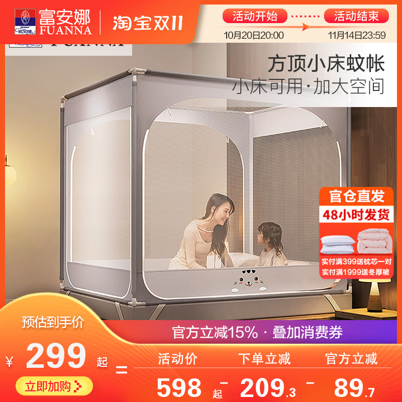 A类TU型加密蚊帐坐床家用3开门回底式儿童易拆洗拉链纱帐加厚支架