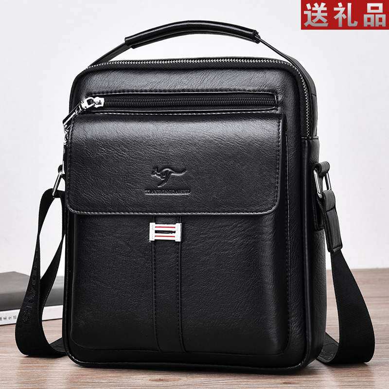 巨森袋鼠真皮竖款单肩包男斜挎包公文包商务休闲男士包包牛皮背包