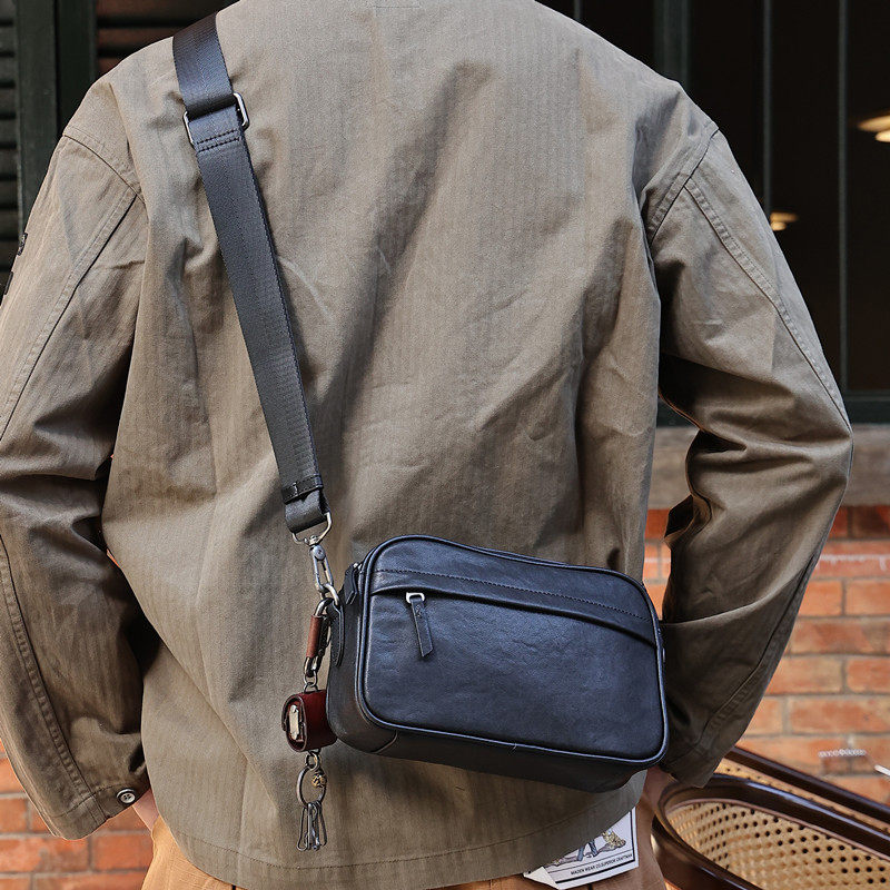 牛皮单肩包男商务斜挎包真皮小背包男士小挂包休闲竖款斜肩包纯皮