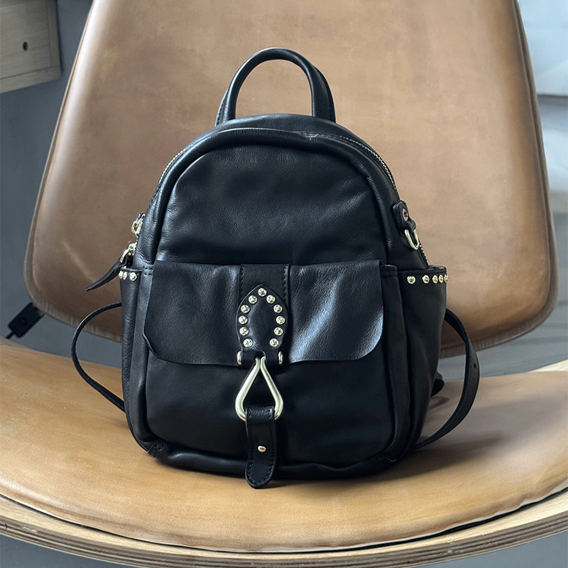 小而美!复古做旧文艺头层牛皮双肩包迷你女包百搭休闲真皮小背包