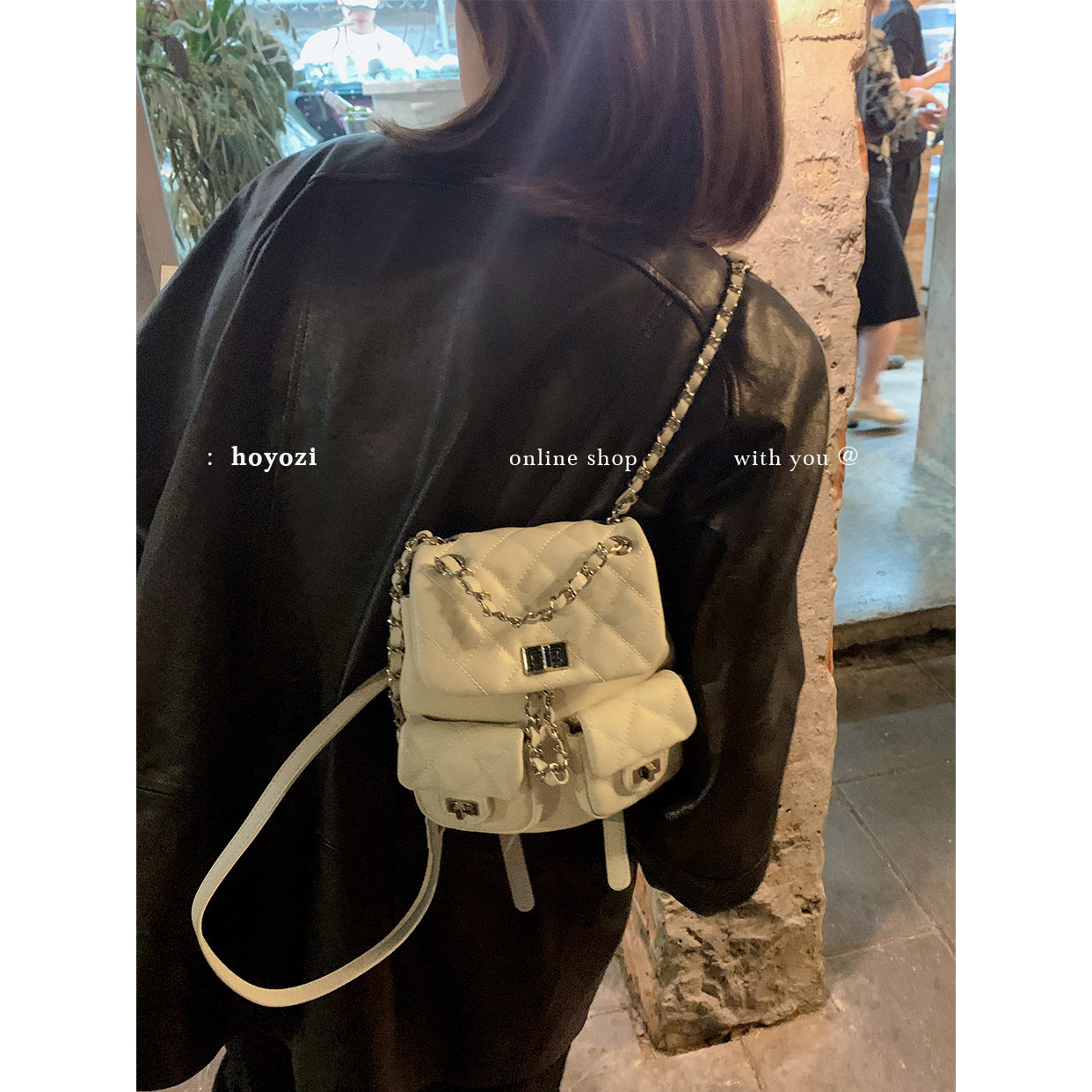 【小优家包包】HOYOZI双肩包 真皮小背包女2025新款时尚链条菱格