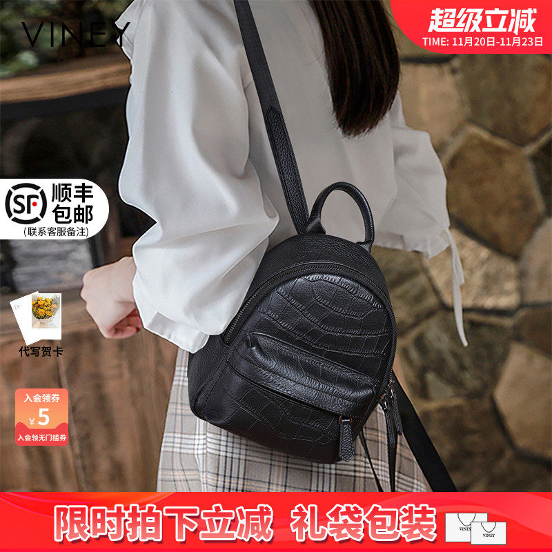 Viney双肩包包女2025新款潮时尚冬旅行书包女大容量真皮小背包女