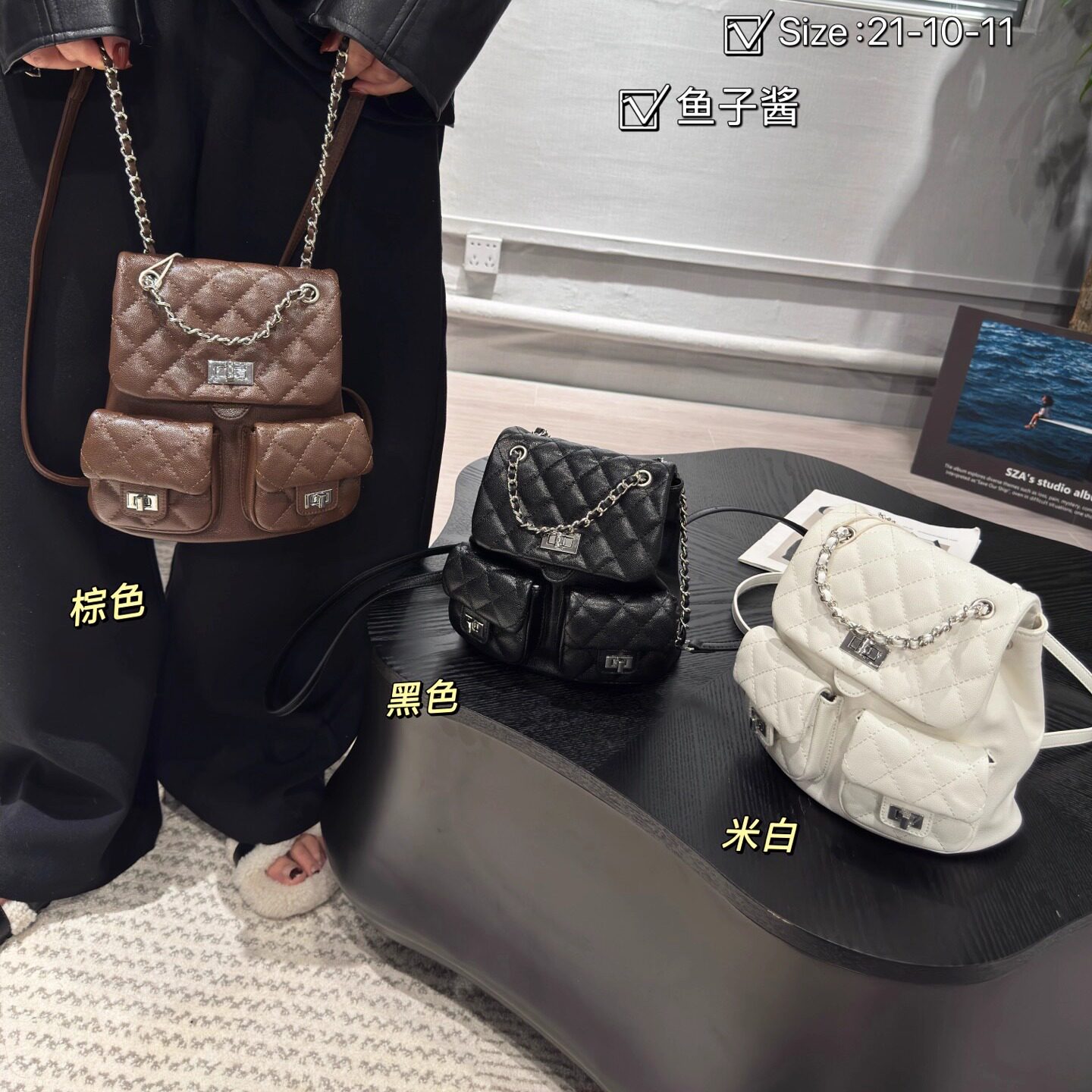 小香风鱼子酱链条双肩包女2025新款百搭通勤单肩包真皮小背包书包