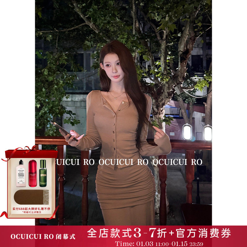 CUICUI崔崔【秋光绘卷】"ins韩系姐姐"纯欲开衫上衣+包臀半裙套装