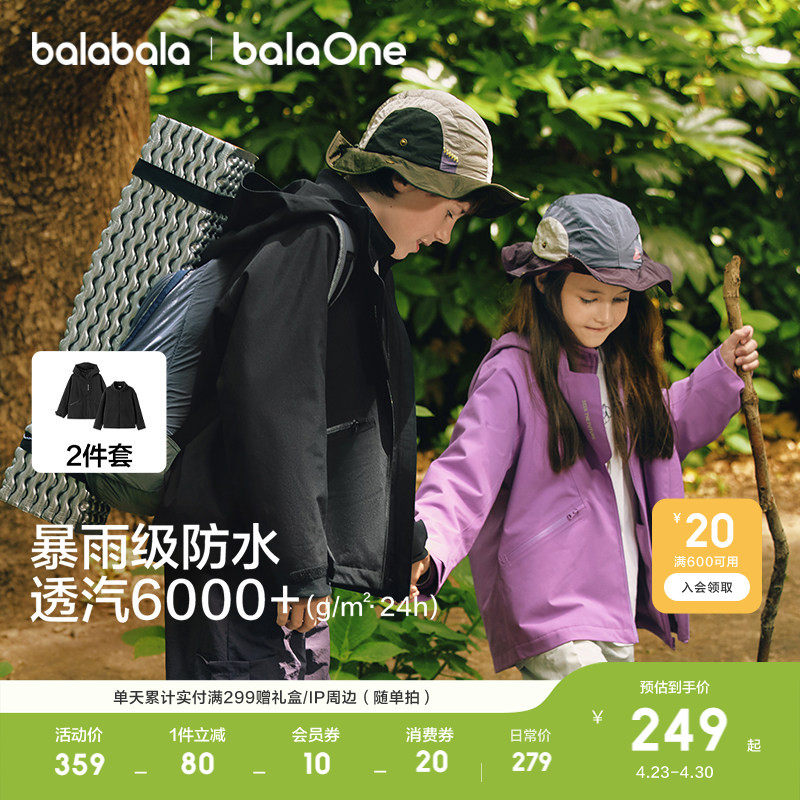 巴拉巴拉童装儿童冲锋衣男童外套女童衣上衣衣服新款冬装两件套酷