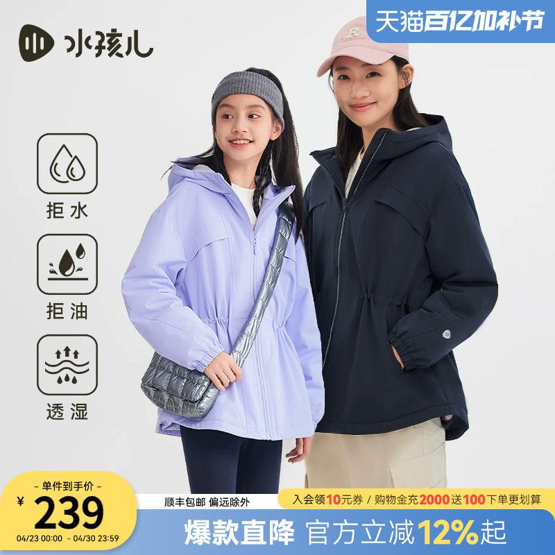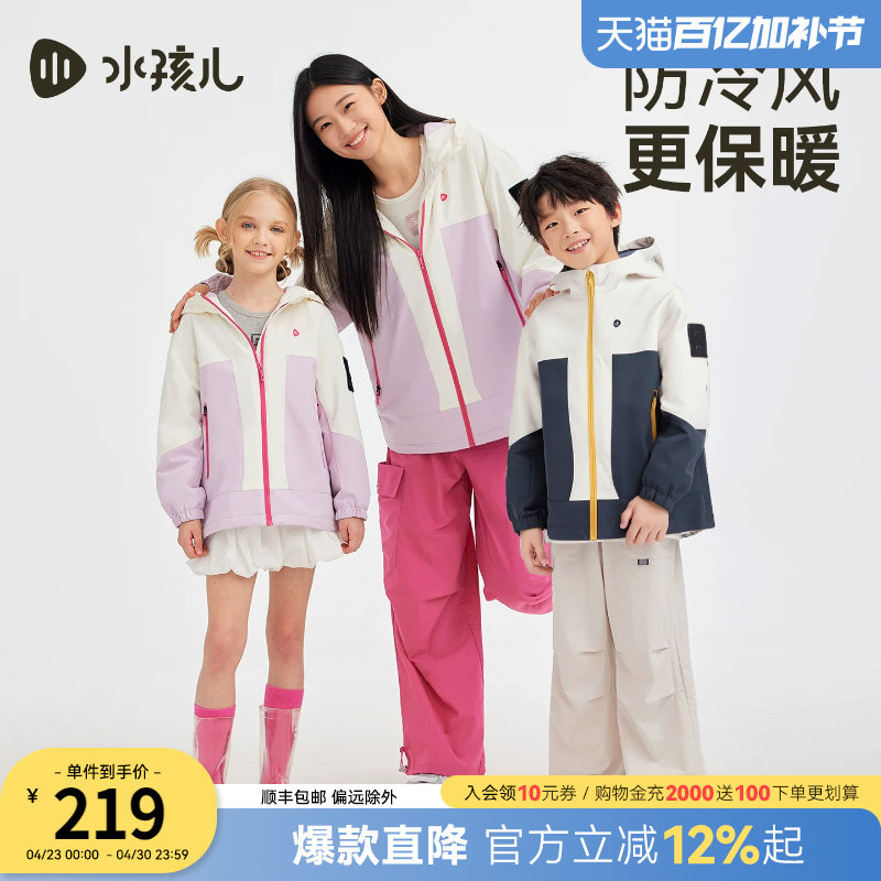 水孩儿亲子装儿童外套三防春秋冬装新款2025男童宝女童户外防风衣