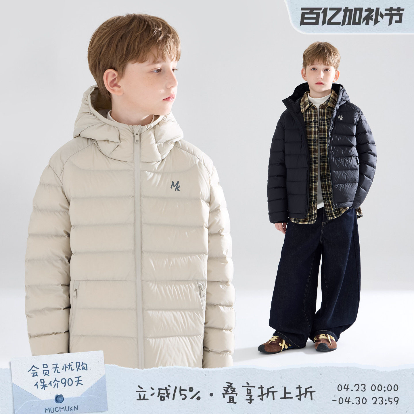 MUCMUKN【三防安心绒】印花连帽排骨羽绒服保暖90绒男女童外套冬