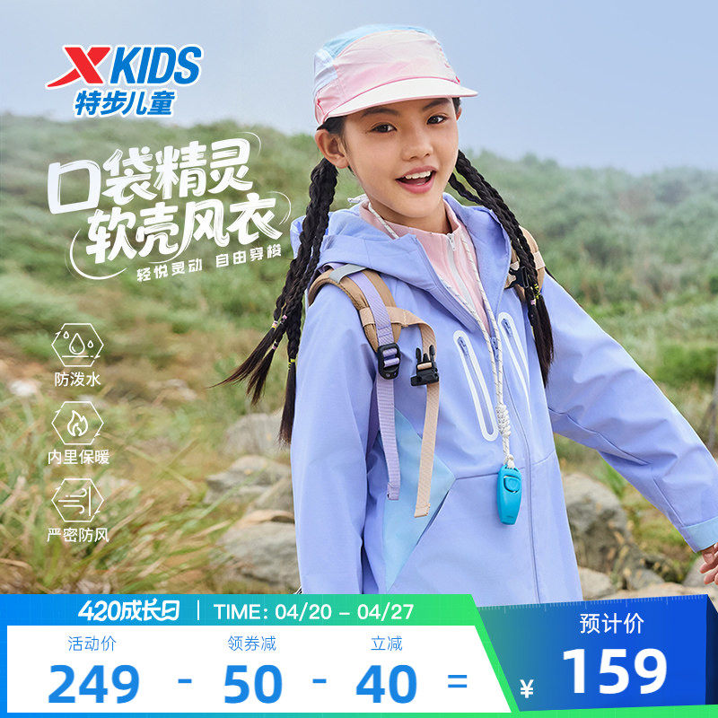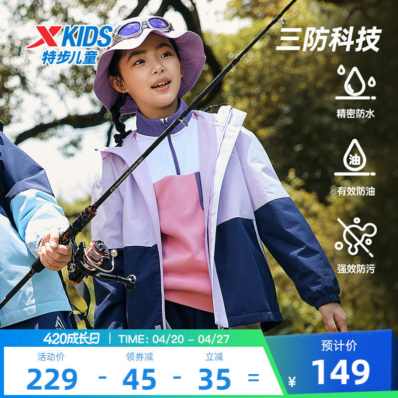 特步童装女童外套春秋季新款儿童加厚运动风衣冬装上衣防泼水防风
