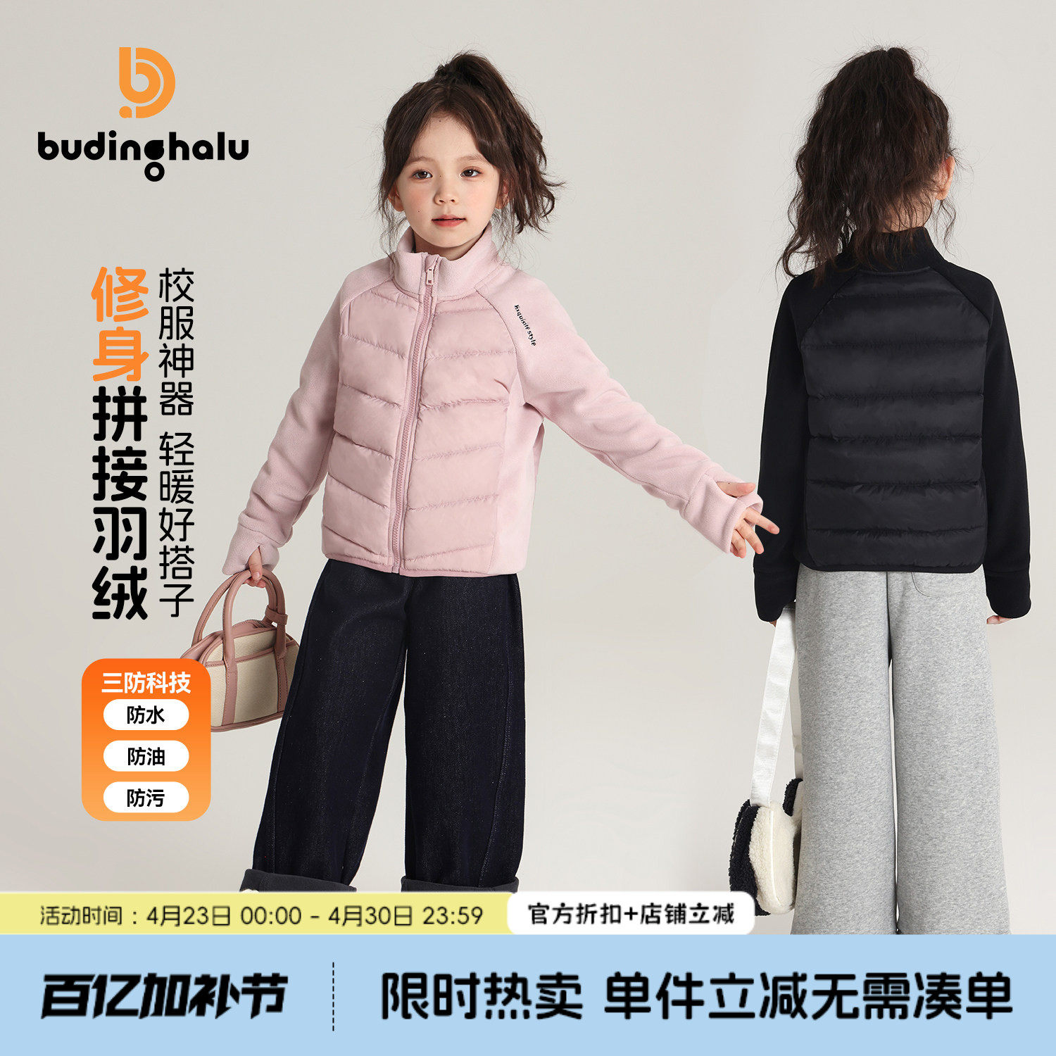 布丁哈鲁童装冬装女童外套2026冬新款儿童立领轻薄羽绒服校服神器