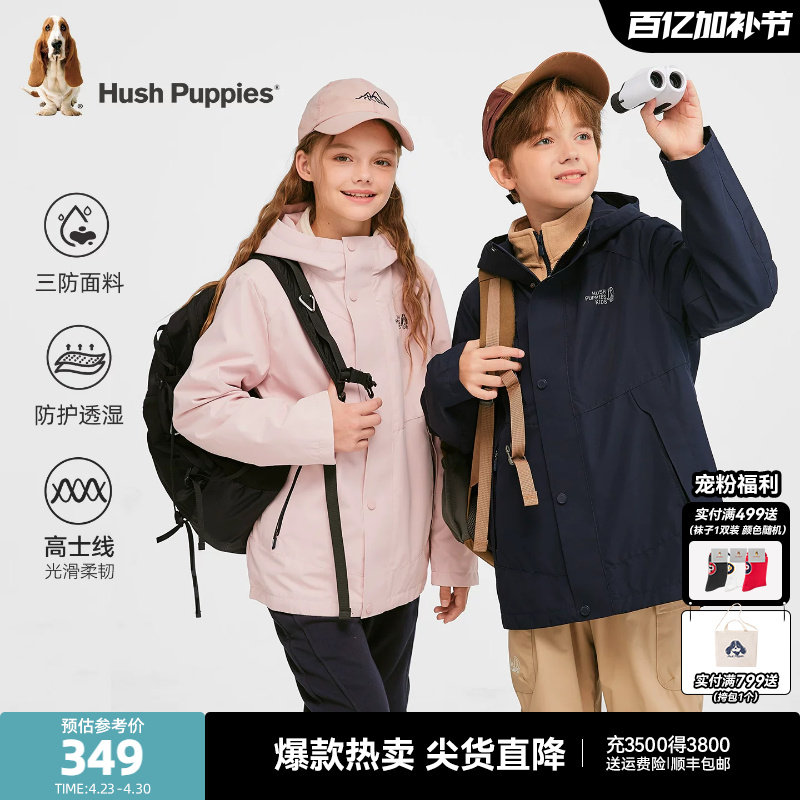 暇步士童装儿童可拆卸三防风衣25秋冬新品男童保暖加绒女童厚外套